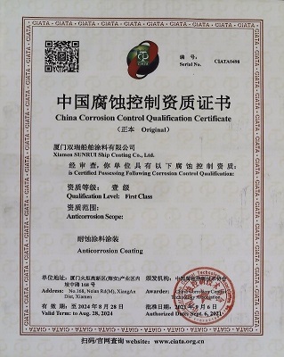 | 雙瑞涂料產(chǎn)業(yè)獲得《中國(guó)腐蝕控制資質(zhì)證書(shū)》及《中國(guó)腐蝕控制設(shè)計(jì)資格證書(shū)》 |